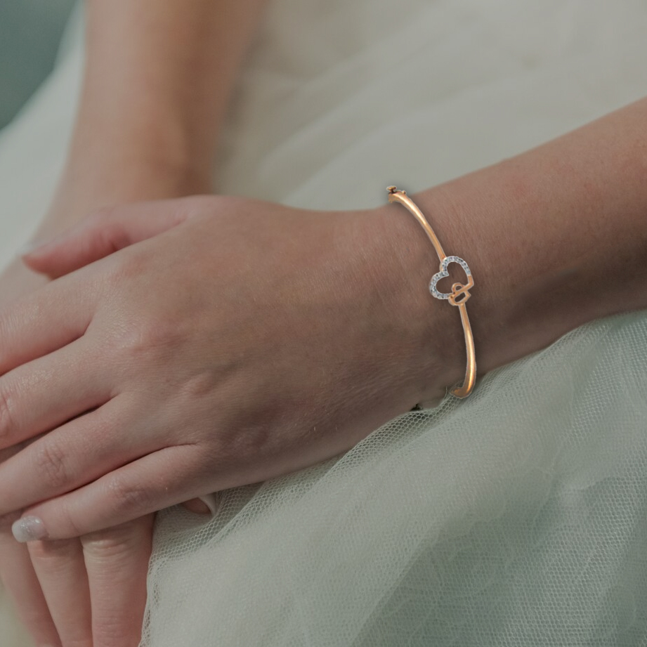A timeless symbol of love, the Diamond Heart Bangle blends elegance with charm. Featuring sparkling diamonds set in a delicate heart design, this bangle is perfect for adding a touch of romance to any look. Whether worn alone or stacked, it radiates sophistication and grace.