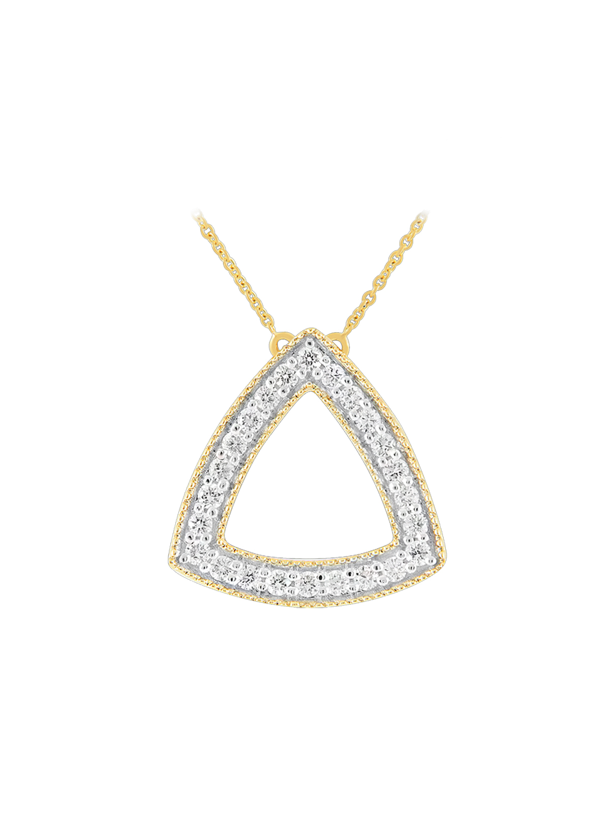 Modern and sophisticated, the Diamond Triangle Necklace represents strength and balance. Its sleek geometric design is enhanced by dazzling diamonds, creating a statement piece that exudes confidence.